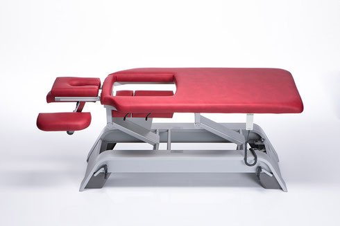 Aus diesem Grund lässt sich die exklusive Therapieliege Ihren Bedürfnissen optimal anpassen. Spezielle Aussparungen im Polster im Brust- und Bauchbereich, lassen sich nach unten fahren sodass Sie wieder in der Lage sind auf dem Bauch zu liegen.